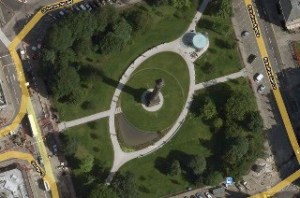 Enter St. Andrew Sq., Edinburgh in Google Earth and when YOU scan in YOU explain why at a cost of £2.8Million the square was defiled with the Satanic Symbolism of The All Seeing Eye which is undeniably the design.