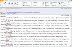 I have published the correspondence below as it arrived with me thus entries are in reverse order and signature blocks are repeated!