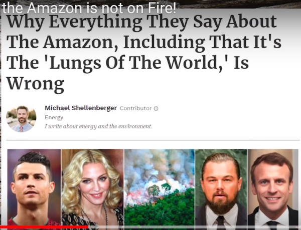 That these lies are so prevalent and so transparent with their pretence that all is based on Carbon & CO2 when only 0.04% of our atmosphere is CO2 and plants both inhale and exhale CO2 and mankind at worst may produce 0.001% of the CO2 in the atmosphere I failed to fall for the glib claims that ‘The Amazon is Burning‘ as a part of closer inspection I believe this ‘Ted’ video may help you quantify the problem!