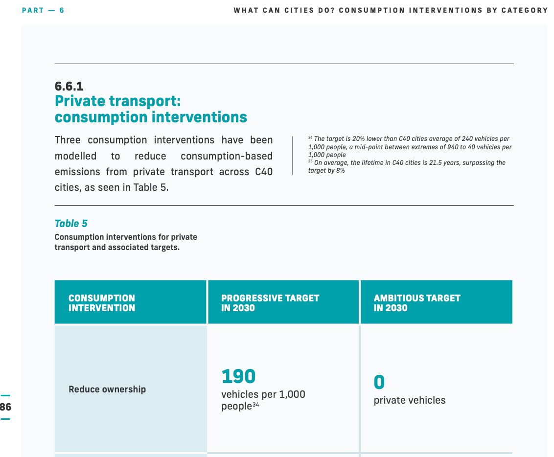 The ambitious target for meat and dairy consumption per person in a C40 city is zero. That’s correct Londoners, within six years, Sadiq Khan would prefer you to abstain entirely from meat or dairy. And the ambitious target for clothing consumption is that you will buy three items of clothing per year. Imagine only being able to buy one pair of socks, one pair of pants, and one T-shirt. And the ambitious flight target is one short-haul return flight (less than 1500 km) every 3 years per person. The ambitious car ownership target? Another zero.