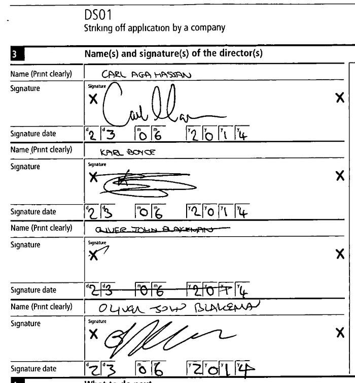 The company was dissolved later in the year on October 28, 2014 as indicated by the company registrar in the U.K.