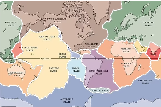 Seismic activity can be detected along the tectonic plate’s borders, where the plates rub up against each other.